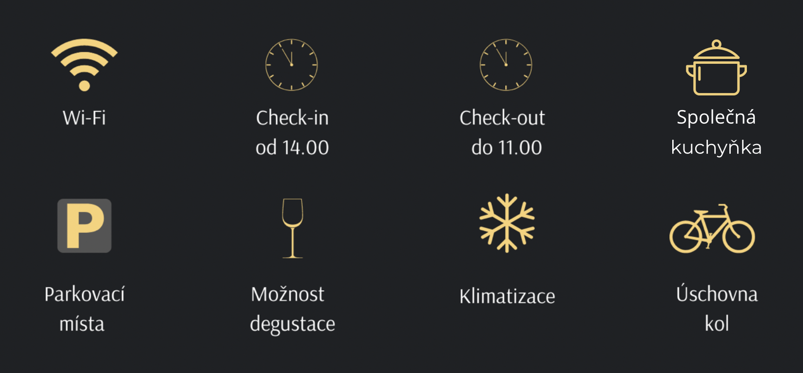 Nově je v ubytování plně vybavená společná kuchyňka s mikrovlnnou troubou, indukční varnou deskou, myčkou, troubou, lednicí, mrazákem a vším potřebným příslušenstvím pro základní vaření. Nechybí zde (za příplatek) ani kávovar, mini bar, čaje nebo vychlazené drinky na osvěžení.